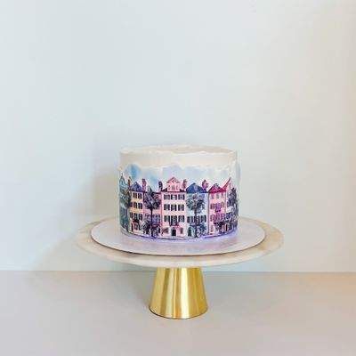 Rainbow Row is a sweet tribute to the city we love most, wrapped in Charleston’s iconic pastel townhomes. With its watercolor details and Southern charm, this cake is perfect for housewarmings, birthdays, or sending a little piece of the Lowcountry to a special someone.